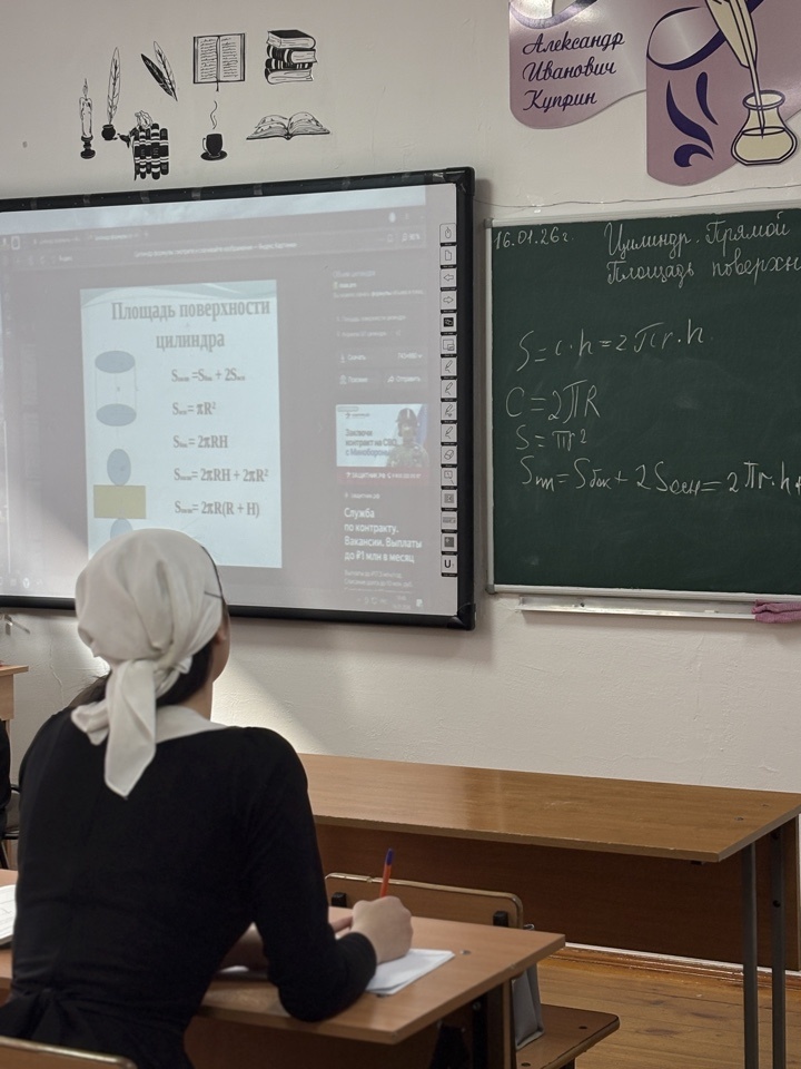 В ОАНО «Центр образования «Личность» 16.01.2026 был проведен урок геометрии в 11 классе на тему: «Цилиндр». На данном уроке обучающиеся 11 класса готовились к ГИА по математике,  выполняя прототипы заданий ЕГЭ. Все дети работали активно
